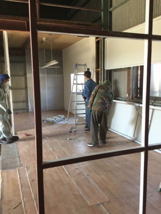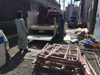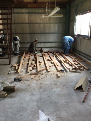 工場内の枠組して壁を作った部分、床部分の解体です。
