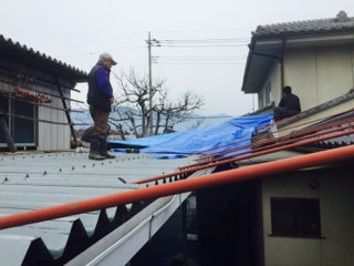 屋根にシート養生してくれたので、