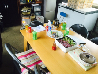 作業途中の一服は、ブドウやお菓子