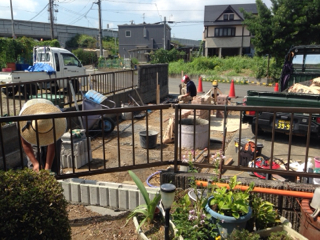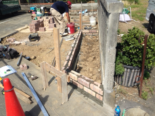 テンポ良く花壇レンガを積み終わりました(o^^o)