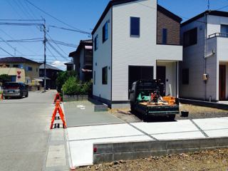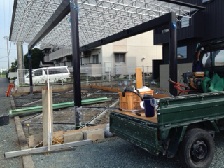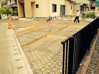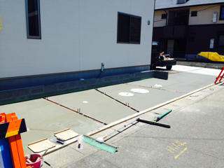 暑いです!吉田町で朝打ったコンクリートは、昼には、カチカチです(*^_^*)