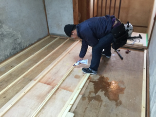 根太 コンパネ フローリングの順で施工します!