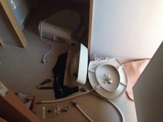 最近の賃貸物件は、ウォシュレット付いてるトイレもありますが、付いてないトイレ多いですね。今回 依頼者様がインターネットで購入した物を取り付けました。今回は、洋服やら細かい不用品片付けなども一緒にやらせていただきました。