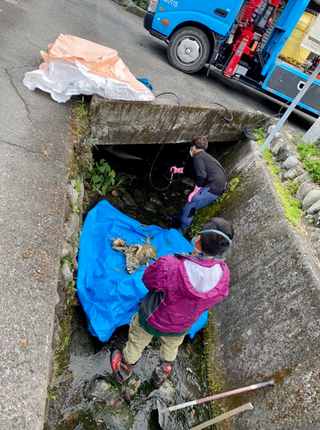 とある、アパートもゴミや土、植物の根っこがうねうねと側溝の役割は果たしていませんでしたʅ(◞‿◟)ʃ