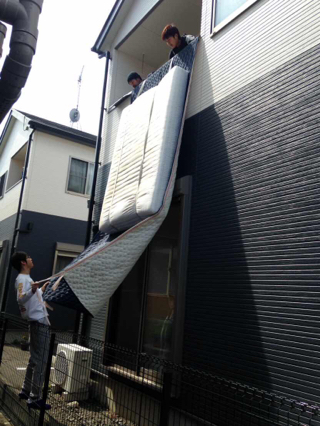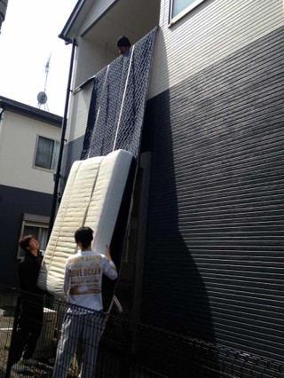 大きな 大きなダブルベッド 荷揚げ 荷下しは 安全に作業を進める為 上2人 下2人が