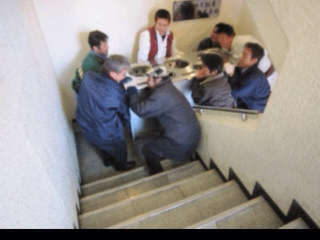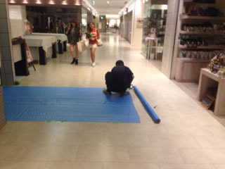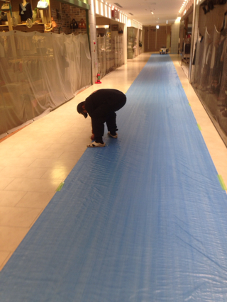 その前に養生です。搬入ルート 地下から二階の貸店舗まで なが〜い なが〜い