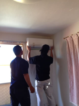 今回二回目の実技訓練 空調設備やさんを講師に静岡便利屋の菊ちゃんのアジト エアコン取り付けしました^o^