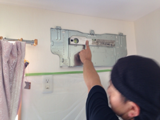 今回は下地が石膏ボードですので、そのままでは、ネジが効きません。石こうボードアンカーを使用して金具を取付します。