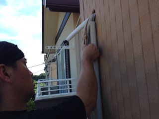 今回は見栄えを良くするのと、耐候性UPの為に配管カバーを付けてもらいました。もちろん友達価格でむりいって 配管テープを巻く手間も省けますね。